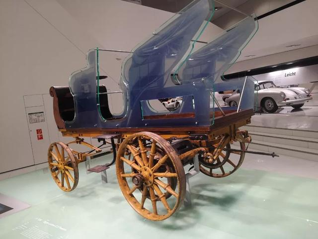 上楼看到的第一辆车,既不是保时捷开山之作356,也不是经典的911,而是一辆长翅膀的无马马车(当年很多长这样的汽车都像马车,所以叫无马马车)。但其实这是一辆电动车,诞生于1898年的“P1”,是费迪南·保时捷博士职业生涯中第一辆电动汽车,它能输出3-5马力的功率,电池充满后行驶时间为6小时,续航里程80公里。电池和电机都放在车底后方,电机完全由保时捷博士自行研发。