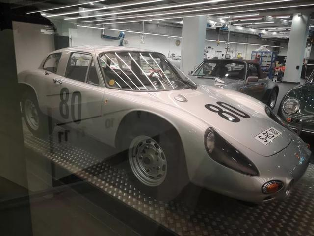 保时捷博物馆的成人票是8欧元,如果你是参观完奔驰博物馆过来的,还可以凭票打75折,德国的汽车企业很团结。博物馆只有两层,共有约90辆车(数量会有变动,因为每个月都会调整展车)。参观要从二层开始,一层只是售票处和维修车间,但维修车间吸引了我。不光是它很有特点——游客可以透过玻璃墙看技师们修复各款老车,而且有两辆稀世珍品吸引了我。