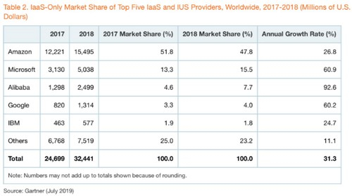 根据权威机构Gartner发布的全球云计算市场数据,2018年阿里云已经走到第三的位置,在国内市场来说业已是遥遥领先。