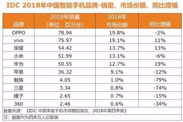 12年之后的今天,当年垄断中国智能手机市场的诺基亚与摩托罗拉等海外品牌已经相继消失,而更名为vivo手机的步步高手机,却发展惊人。根据IDC发布的2018年中国智能手机品牌销量排名报告显示,vivo手机以7597万台销量,力压荣耀、小米、华为与苹果等品牌位居第二位,与第一的OPPO只有0.7%的市场份额差距。不过,相较OPPO 2018年只有0.2%的同比增长,vivo同比增长11%。