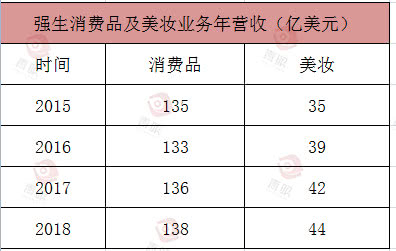 目前,强生集团全年营收超过800亿美元,其中,制药板块占比近半,其次为医疗器械、消费品板块。梳理强生近3年财报数据可以看出,消费品板块是三大部门中增长最慢的,增幅在3%以下,其中,受“致癌”舆论风波的影响,婴儿护理业务下滑显著,这也是强生押宝美妆的原因之一。