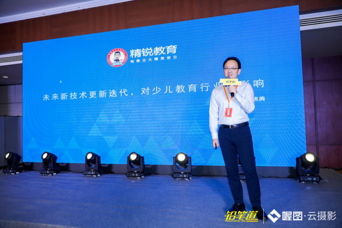 在铅笔道“少儿教育行业峰会”现场,焦典做了题为《未来新技术更新迭代,对少儿教育行业的影响》的演讲。