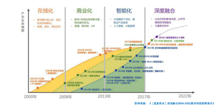 2000年开始,教育走过了在线化、商业化、智能化、深度融合的整条道路曲线。