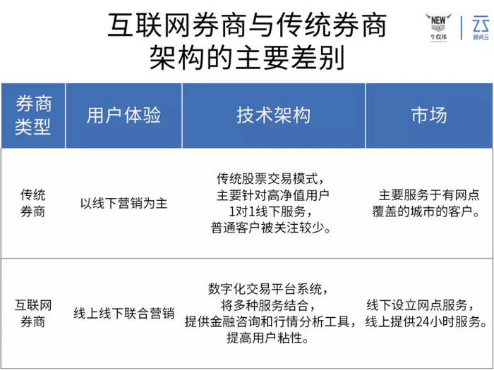 而互联网券商在传统线下营销的基础上加上了线上营销,同时利用数字化交易平台系统将服务整合,为用户提供更多的投资选择,并且减少了用户开户的时间,增强了用户粘性。