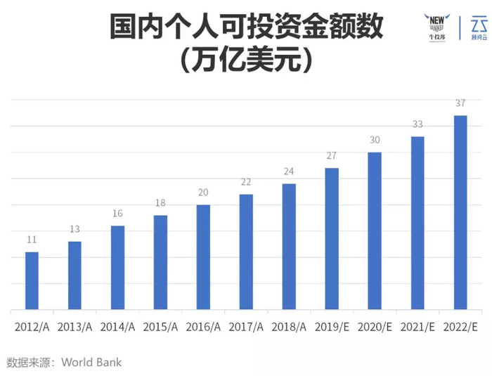 另一方面,随着这些年中国经济的飞速发展,一大批新高净值人群和新中产阶级人群迅速崛起,而这批新兴投资人的可投资金额也在逐年递增。