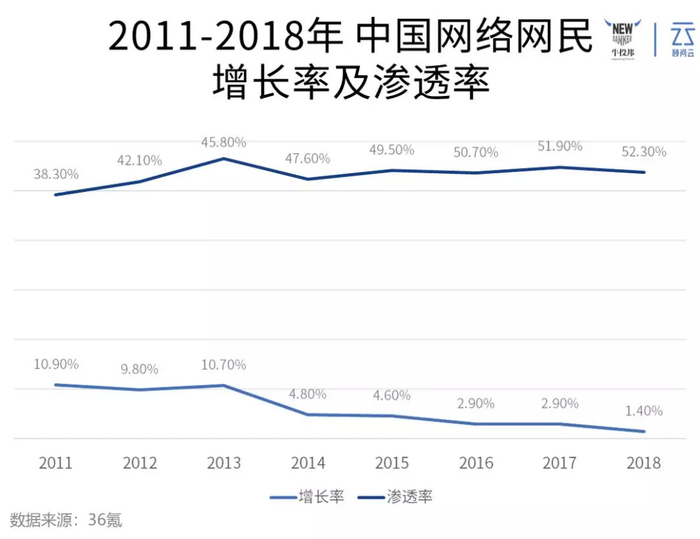 由于这些年中国政府大力支持“互联网+”的发展模式,中国的网络渗透率越来越高,从2011年的38.3%增长至2018年的52.3%,年增长率约为4.55%,而这其中很大一部分都是互联网券商的使用者。