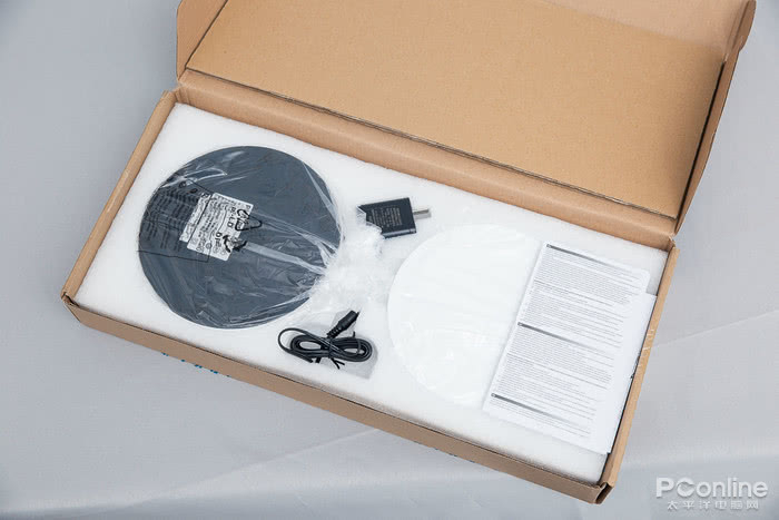 打开盒盖,台灯主体、电源适配器以及说明书一览无余,台灯和电源适配器还被塑料泡沫包裹着,进一步降低了台灯在快递运输中因碰撞产生破损的风险。