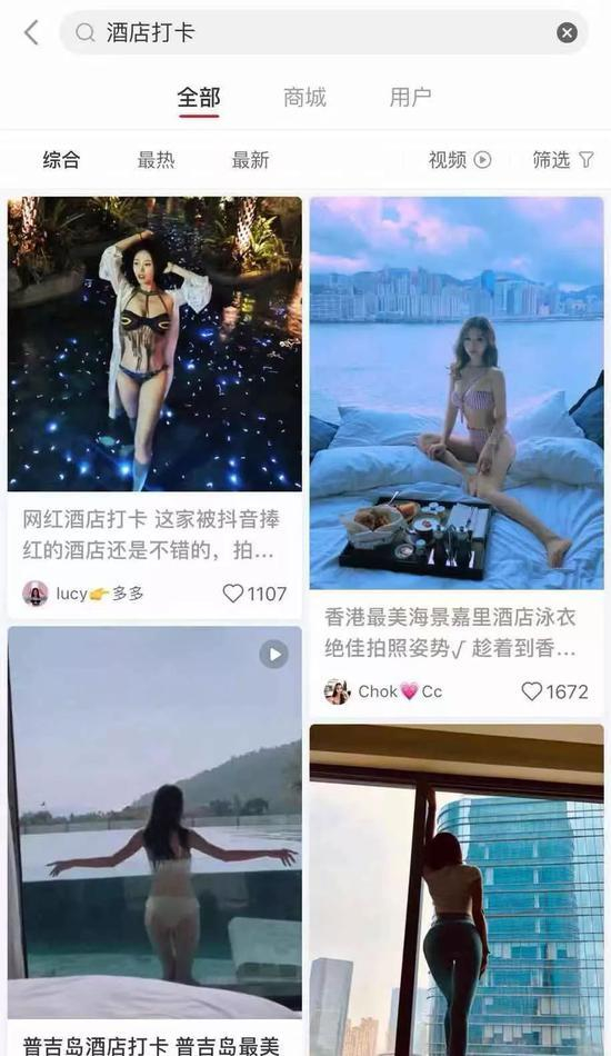 网友在7月底小红书“酒店打卡”页面搜索到的内容,图自财视传媒(ID:caishiMV)