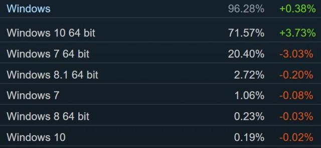 我们从Windows操作系统详细的份额来看,Windows10 64位操作系统也是深的消费者的喜爱,Windows 10 64位操作系统的增长率为 3.73%。