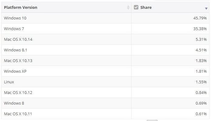 我们从这份数据中可以看到,位于榜首的Windows 10可以说依旧处于全球遥遥领先的地位,份额更是从45.79%增加到了48.86%,而Windows 7的市场份额则从34.44%下降到了31.83%,而苹果的Mac OS X 10.14操作系统则成为了全球第三大操作系统,占据了全球5.38%的市场份额,而位居第四的Windows 7.1操作系统则从4.51%升到了 5.29%,如果微软在努力一点,或许全球PC操作系统排行榜前三甲都将会被微软所占据。