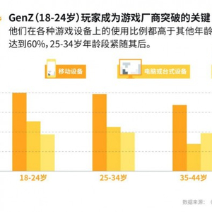 从年龄层面来看,GenZ(18-24岁)玩家成为游戏厂商突破的关键,他们在各种游戏设备上的使用比例都高于其他年龄人群,且手游比例最高,达到60%,25-34岁年龄段紧随其后。精准的用户定位和行之有效的内容策略无疑是海外营销的制胜关键。
