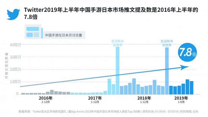 日本既是全球ARPU值(每用户平均收入)最高的市场,也是封闭性最强的国家之一,只有清楚了解当地的用户兴趣和文化调性,才能在激烈的市场竞争中脱颖而出。根据日本有关中国手游讨论量的统计,话题一般由手游用户自发,或由官方账号推送,高峰时段主要发生在新品发布、新闻发布和节日(圣诞节、情人节等)。