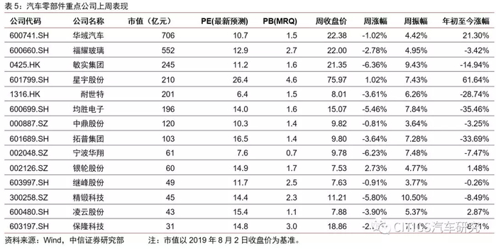 上周汽车零部件重点公司中,银轮股份涨幅最大,为+2.73%,年初至今涨幅+1.48%。星宇股份年初至今涨幅最大,达到61.64%。