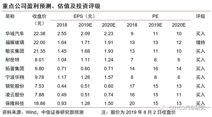 我们认为,长期看中国有机会成为全球汽车制造基地,零部件板块具有持续的成长性,从三个维度来筛选优质公司:1. 客户(进入全球第一梯队客户群);2. 产品(单车配套价值量持续提升);3. 估值(处于历史估值中枢下方0.55个标准差)。建议重点关注:华域汽车、福耀玻璃(03606)、保隆科技、银轮股份、星宇股份、均胜电子、宁波华翔、拓普集团、敏实集团(00425)、耐世特(01316)、中鼎股份、凌云股份、精锻科技、继峰股份等。