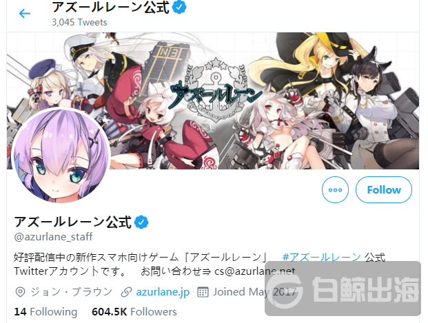 可以看出《碧蓝航线》的日本市场大受追捧,其在日本宣传力度大并获“神运营”褒奖。其官方 Twitter 从 2017 年开始登陆,超过 60 万名的关注度,并且时常与玩家互动并掌握市场动态,其运营功不可没。