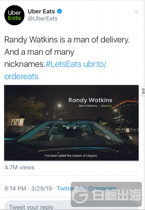 下面以 Uber Eats 为例,Uber Eats 通过一步一步的优质内容策略不断地向用户渗透。首先 Uber Eats 以投放出优质的短视频,并成功地激起了用户的兴奋度。