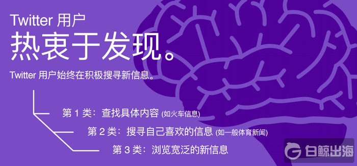 构建 Twitter 营销渠道,最初的目标总是吸引网站访问者到网站,以最便宜的方式建立受众群体。Twitter 调查发现用户热衷于发现三类信息,分别是查找具体内容、搜寻自己喜欢的信息和浏览宽泛的新信息。广告内容一定要独一无二,并且和潜在用户高度相关。通过有创意的插图或文案吸引访问者,确保广告标题和封面图片吸睛、清楚,与品牌形象一致。