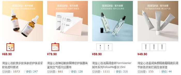 花生米发现,网易严选、淘宝心选、京东京造在推出电动牙刷、美妆工具、美容仪器、日用品等与“生活方式”息息相关的产品之外,目前均已推出了自营品牌的美妆产品,且在终端已形成一定影响力。