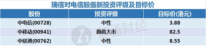 四,瑞信对电信股最新投资评级及目标价: