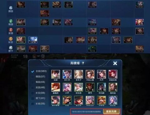 本作中虽然所有玩家仍然共享牌库,但是多了一个每个玩家独立的弃牌库。即玩家每次挑选英雄后不要的棋子,都会进入自己的弃牌库,此后的搜寻过程中将不会再次抽到该棋子。通俗来讲就是虽然该棋子仍在公共牌库中,但曾经跳过它的玩家就不会再次与它相遇。但是当玩家需要弃牌库中的棋子时,就可以选择洗牌,使得弃牌库中的英雄再次对自己可见。