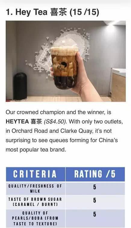 (喜茶喜获新加坡媒体评比第一)