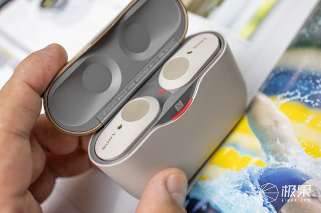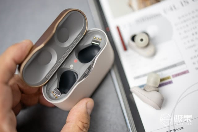 可能大家会忽视一个问题:取出耳机的方便程度,以前有些耳机放在供电盒里凸出不多,所以很难取出来,即便airpods也有一点这种情况。看到WF-1000XM3这样子心想完了,又是个坑爹的设计......,但稍微研究了一下发现有小窍门,只要用手指轻轻从两个耳机中间的空隙当中扣一下就能轻松取出来了,所以只要稍稍改变一下习惯,取耳机并不难。
