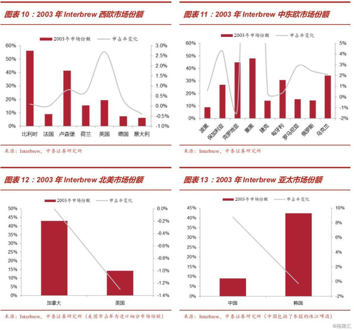 (1)2003年前:Interbrew立足西欧,快速开拓中东欧市场。欧洲以外仅布局了加拿大、美国、中国、韩国等少数国家。