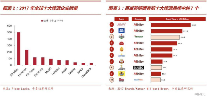 1.1百威英博通过并购成为全球啤酒巨头,其拥有强大的品牌组合