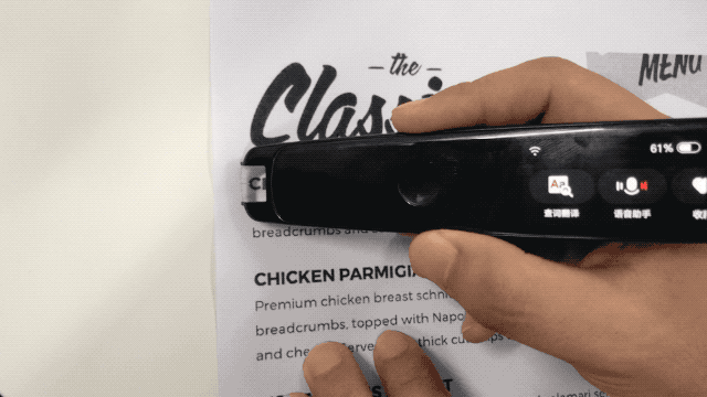 实际体验下来,网易有道词典笔2.0可以很准确的识别出菜品的名字和后面的价格。值得注意的是,区别于市面上仅能识别规整文字的翻译器,网易有道词典笔2.0还支持识别特殊印刷字体或者有背景的字体,这样一来,不论出门在外遇到什么情况,都能通过网易有道词典笔2.0游刃有余的扫描翻译。