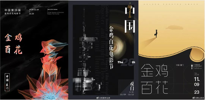 第 28 届中国金鸡百花电影节已决定将于 11 月 19 日至 23 日在厦门举办。由于往年该电影节的海报设计过于「土味」而遭广大网友吐槽。而今年,已经有网友开始发起「救救这只鸡,金鸡你太美」金鸡奖民间海报设计征集活动,邀请各大「神仙」网友出手拯救金鸡奖海报。上图与下图分别为去年的海报以及今年部分网友所设计的海报。