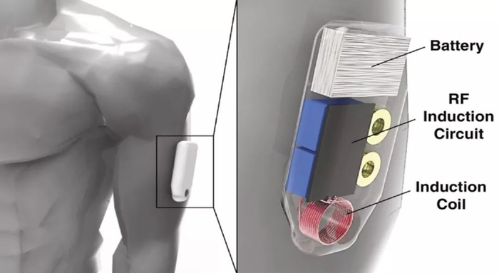 该可穿戴设备分为两个部分,一是贴在用户胸上的传感器贴纸,二是佩戴在手背上的触发器。一旦传感器检测出体内止痛药含量过量,就会启动手臂上的触发器,溶解里面的解毒剂纳洛酮胶囊,并且让纳洛酮通过皮肤吸收进体内。