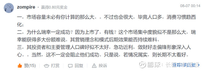 第四个高票赞不看好瑞幸的理由是@zompire,正派哥说的瑞幸的管理层口碑不好,敛财好走偏锋形象深入人心。