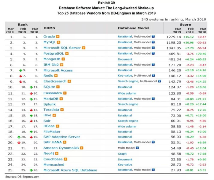 上图为DB-Engines的排行榜,相信许多朋友都不陌生,今年3月已经不是最新的数据,在这里列出只是给大家一个参考。该排行榜几乎在每次更新时,期待国内数据库领域的专家们撰写点评。