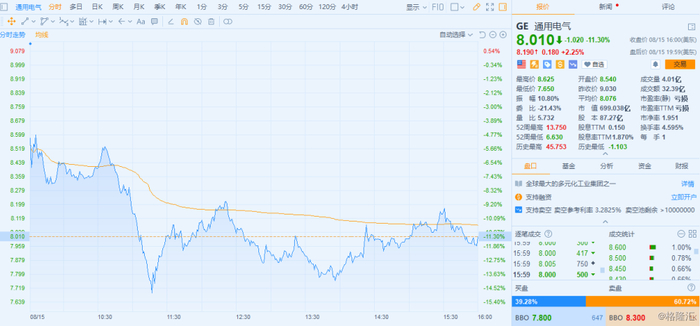GE的股价快速下跌中(截止收盘暴跌11.30%)