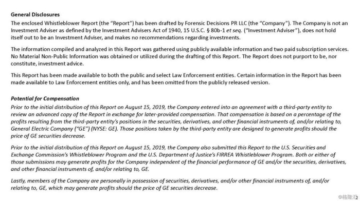 2019年8月15日,财务专家Harry Markopolos及团队发布了一份针对GE的做空报告,该报告长达175页,详细解释了GE为什么看成历史上作假的典范。