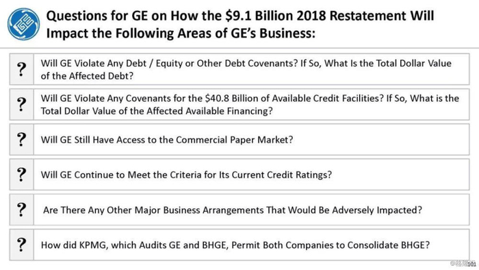 而此次马科波洛斯报告直指“通用电气,一个比安然更大的诈骗案”,报告中称,“我的团队过去7个月一直在分析通用电气的会计账目,我们认为我们所遇到的380亿美元欺诈案只是冰山一角。”马科波洛斯还表示通用电气公司财务欺诈由来已久,最早可以追溯到1995年,他已将报告递交监管部门,或将使得通用破产。