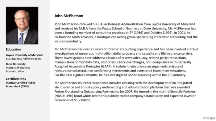 其四,运营资金情况远比披露的糟糕。马科波洛斯(Harry Markopolos)在十年前的麦道夫诈骗案中一战成名,不仅捅破了美国历史上最大的庞氏骗局,还将华尔街传奇人物、前纳斯达克主席麦道夫(Bernard Madoff)送进监狱,一蹲就是150年。