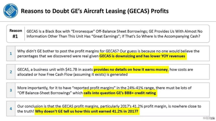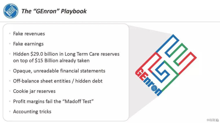 当你阅读我们的幻灯片时,你会发现通用电气使用了许多与安然公司相同的会计技巧,以至于我们把这称为“Genron(通用电气-安然案)”案例。