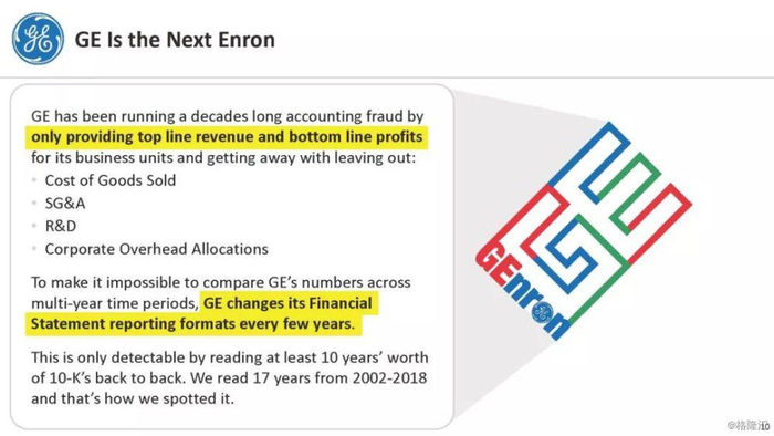 原标题:附报告原文 | 庞氏骗局揭发者指通用电气的骗局比安然还大,致股价跌逾11% 来源:格隆汇