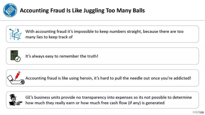 我的团队在过去的7个月里一直在分析通用电气的会计,我们相信我们遇到的380亿美元的欺诈只是冰山一角。从长远来看,380亿美元的会计欺诈占通用电气市值的40%以上,我们知道我们只找到了其中的一部分。如果你和我们一样喜欢分析会计欺诈,我们相信你会发现我们的幻灯片非常吸引人。