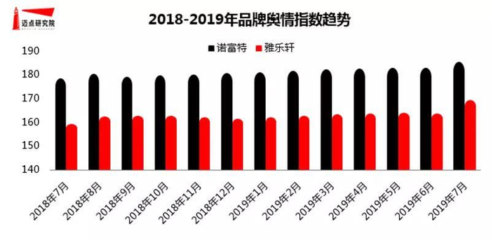除了潜在客群的关注,在反映实际客群消费方面的舆情指数上,本月表现突出的两个品牌是诺富特和雅乐轩,两者舆情指数分别为185.36和169.30,环比上月分别提升1.33%和3.40%。
