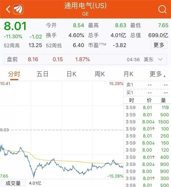 受此影响,周四GE股价开盘便下挫,盘中一度跌逾15%,最终收跌11.3%,创11年来单日最大跌幅。市值一天蒸发89亿美元,折合人民币626亿元。