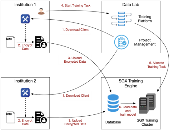 训练引擎启动训练相关的 Enclave,并从云端存储读取加密数据完成指定的训练任务。