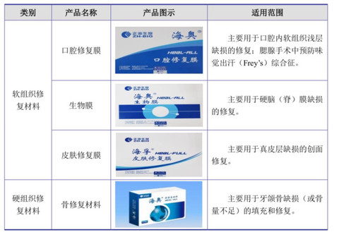 正海的主要产品包括软组织修复材料:口腔修复膜、生物膜、皮肤修复膜;硬组织修复材料:骨修复材料