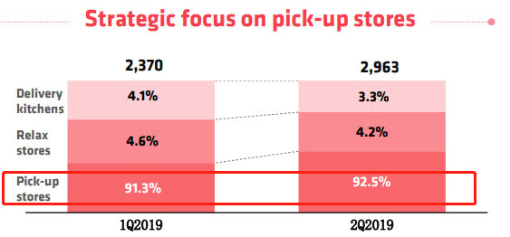二季度,瑞幸快取店和悠享店门店数量,从2019年3月的2163家和109家,增长至2741家和123家。至二季度末,快取店占比达到全部店面的92.5%,相比于一季度的91.3%进一步提升。