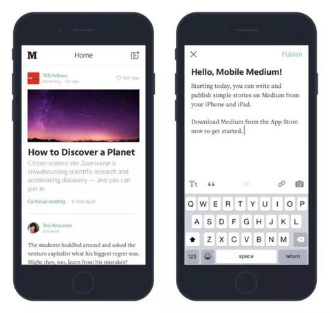 2015年3月,Medium为用户提供了直接从平台的iOS应用程序编辑和发布内容的新功能。在此之前,Medium的iOS应用程序只允许用户阅读平台上的文章。事实证明,在移动设备上编辑及发布内容,是用户群体的一致迫切需求。