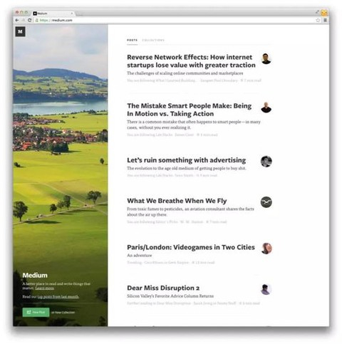 尽管在五年的发展中,Medium跌了不少跟头,但是它一直关注用户的体验。而Medium成功的部分原因是美观界面设计。成功的秘诀不仅于此,抵制在平台上投放广告的行为,拒绝重走传统媒体的道路也是之一。
