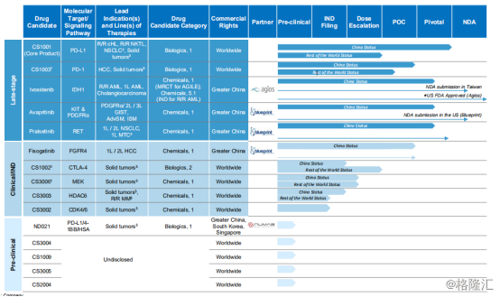 图表四:基石药业产品管线