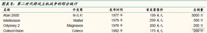 电子游戏行业的第二世代结束于“雅达利崩溃”之时。这个世代的赢家是雅达利,它的Atari 2600/5200系列主机卖出了3000多万台;但是它很快就跌落神坛、一去不复还。Magnavox(飞利浦)、Mattel、Coleco瓜分了剩下的蛋糕,但是同样在“雅达利崩溃”之中元气大伤。与此同时,任天堂在掌机领域建立了不可动摇的优势;世嘉则在街机行业一边赚钱一边静待时机。下一个世代,注定将属于这些日本公司。