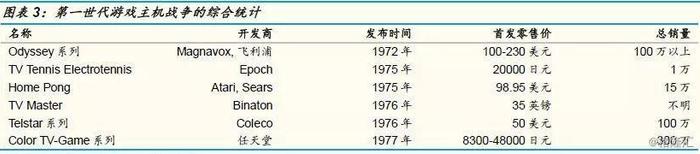 1968-1976年,被称为电子游戏产业的“第一世代”。在这个时期,电子游戏从无到有、从实验室走向娱乐场所,又走向了千家万户的客厅。但是,由于技术局限,电子游戏尚未从玩具当中独立出来,市场规模还不大。很快,雅达利公司将以“第二世代”解决上述问题,取得巨大的成功,然后带来巨大的灾难。